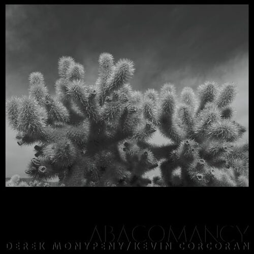 Abacomancy is the result of a one-day recording session in Monypeny's adopted town of Joshua Tree, CA in the spring of 2022. Entirely improvised, the tracks display an impressively wide variety of approaches/moods/emotions: from blistering Sharrockian skronk (Part One) to meditative Eastern-influenced shimmer (Part Three, which features Monypeny on shahi baaja), to dark, foreboding long-form drone (Part Five). There's a remarkable synergy at work here; particularly impressive is Corcoran's highly sympathetic and textural playing on the quieter, more drone-based tracks. Monypeny, whose free-improv guitar playing has not been much documented on record, presents a gamut of sounds and dynamics, taking Abacomancy far beyond a typical document of a high-energy/free-blowing session.