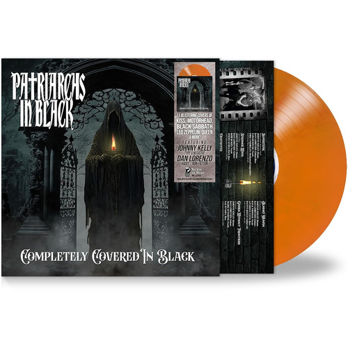 NoLifeTilMetal Records is proud to announce the release of Completely Covered in Black by Patriarchs In Black. Patriarchs In Black was started at the end of 2021 by Dan Lorenzo (Hades, Non-Fiction) and Johnny Kelly (Type O Negative). Patriarchs in Black have released four original albums since forming with each song having a different singer and bassist. The albums are: Reach for the Scars (2022), My Veneration (2023), Visioning (2024), Home (2025) and the 6-song EP Covered in Black (2025).The new album features stunning covers of bands like Kiss, Led Zeppelin, Black Sabbath, Peter Gabriel, Twisted Sister, and more. The album also features guest vocals from Mark Sunshine (Unida), Karl Agell (ex-Corrosion of Conformity), Kyle Thomas (Exhorder), Rob Dukes (Exodus), and Bobby Jensen (Hairball). Completely Covered in Black features 11 cuts, as well as a vinyl bonus track of a Patriarchs in Black original song titled, "Show Them Your Power." The CD features 2 bonus cuts including a stunning version of "Kashmir" (Led Zeppelin) and a Patriarchs in Black original titled "Dead and Dying."Perhaps the best way to understand the point of this album is to read the words of guitarist Dan Lorenzo himself: "Johnny and I both love recording cover songs. If you haven't noticed we REALLY love Kiss. As I write this, it's only been a week since the death of Ace Frehley. Like a lot of musicians my age, I started playing guitar because of Kiss. On New Year's Eve, 1978, I had yet to pick up a guitar. My friends and I wanted to play "air guitar" to Kiss Alive! I immediately said, "I want to be Ace." Three months later and I started playing guitar. It would have been nice if SOMEBODY told me Kiss tuned to Eb! Anyway, I then got into Aerosmith, Cheap Trick, AC/DC, and then Judas Priest, Slayer etc. It was Johnny's idea to do the Peter Gabriel track. A bunch of people flip for our version of "Games"... maybe thanks to Mark Sunshine's ridiculous vocal performance... " -Dan Lorenzo, October 23, 2025The vinyl is pressed on heavyweight opaque orange vinyl and includes a 12" x 12" insert with photos, liner notes and credits. Only 200 vinyl copies will be pressed. Don't miss your chance to own this incredible album from Patriarchs in Black!